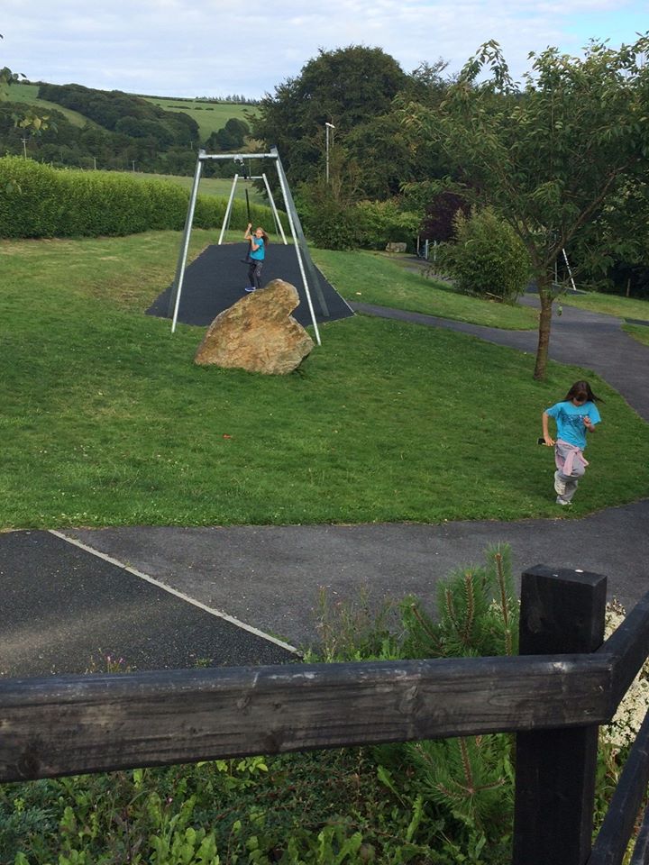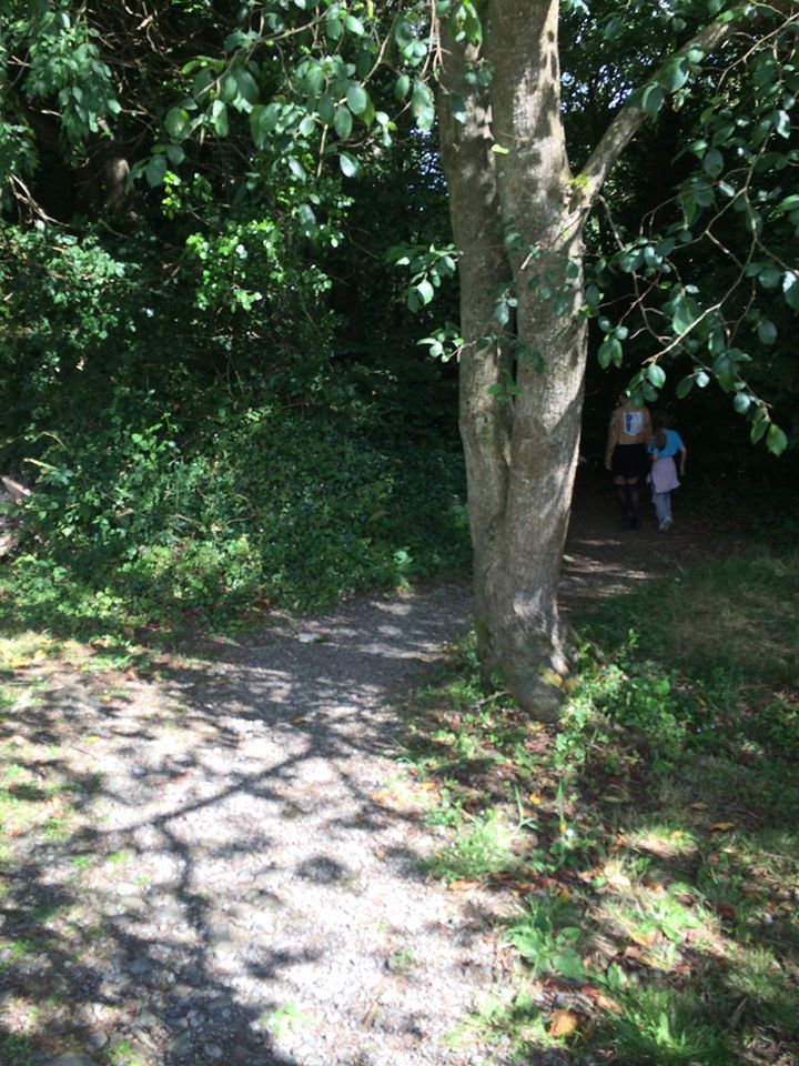 We re-traced our steps and crossed the road back to the castle and went through the gap in the wall – which led us back along the way we had come through the little woodland and back towards the playground.