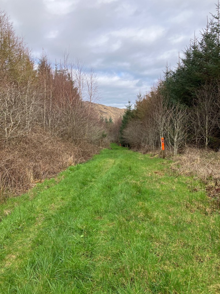 Remember that no dogs are allowed on the trail and to always use the etiquette of leaving gates closed if you found them closed, and open if you found them open. The walk eventually crosses the main road again (so take care if anyone has run ahead) and then mergers for a part of the way with the Seefin Loop.